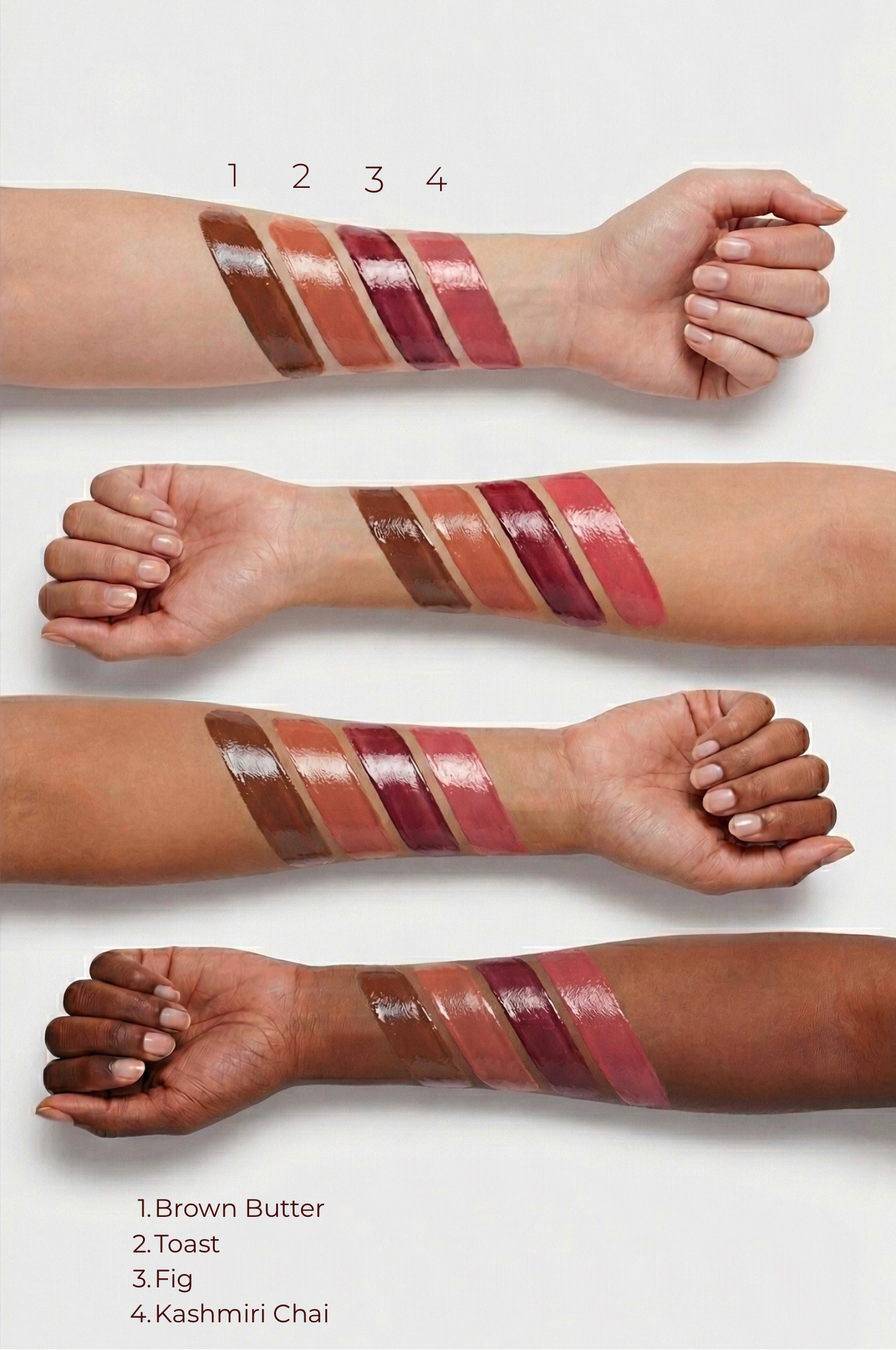 Brown Butter is a deep, warm brown with a soft cocoa base and subtle red undertones that keep it looking rich. The colour sits close to the natural depth of the lips, creating a smooth, blended effect that feels instinctive and flattering.