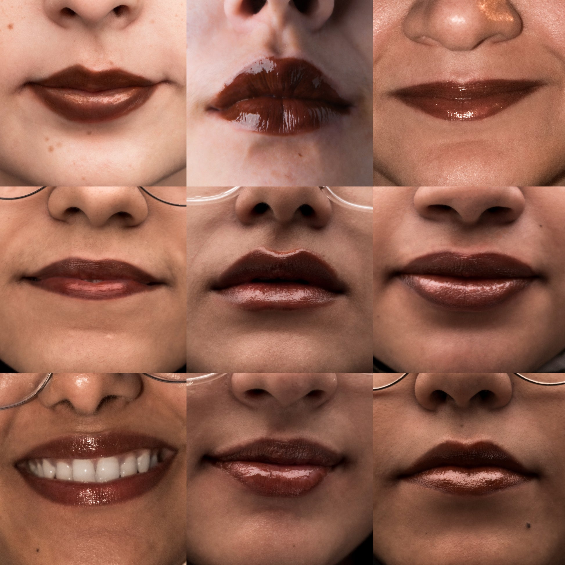 As it wears, the shade settles into a worn-in brown that looks almost like a natural stain, adding depth and warmth without overpowering the face. On lighter skin, it reads as a defined brown lip, while on medium to deeper tones it melts seamlessly into an everyday neutral.